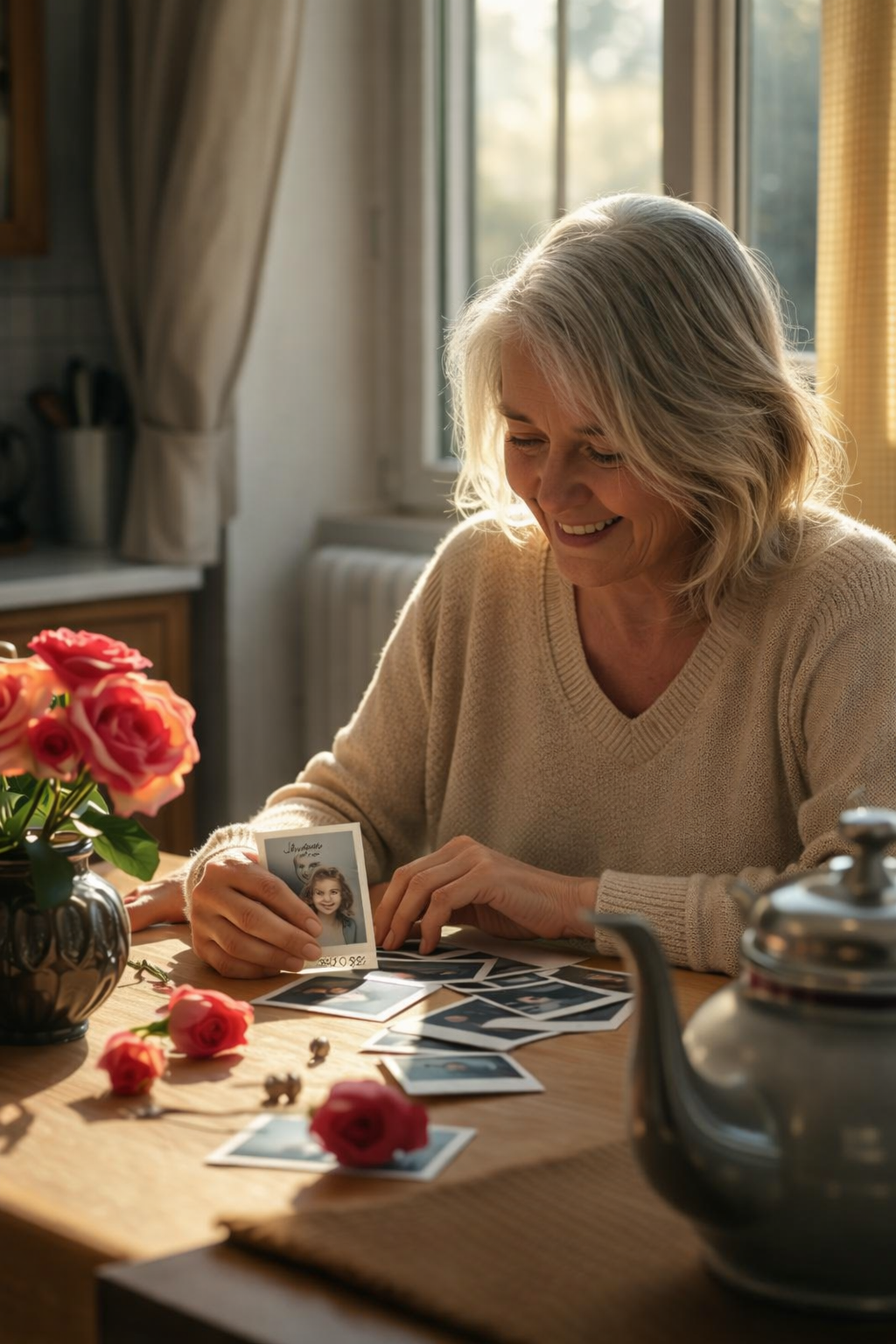 Az este nyugodtan telt: Maria Petrovna kérdéseket tett fel a nyaralási terveinkről, tanácsokat adott a kerthez, vicces történeteket mesélt. Mielőtt elmentünk, szorosan megölelt, mintha a lánya lennék, és suttogva mondta: „Köszönöm, hogy eljöttetek. Üres a ház, amikor nincsenek itt.” Szergej, aki már a volánnál ült, váratlanul így szólt: „Legközelebb virágot viszünk neki, rendeset, nem olyat, ami a bokrokban nő.” Ránéztem, és hosszú idő óta először mosolyogtam. Hazafelé szinte nem is beszéltünk, de a csend most már nem volt nyomasztó, hanem meleg, mintha végre valami felengedett volna közöttünk.