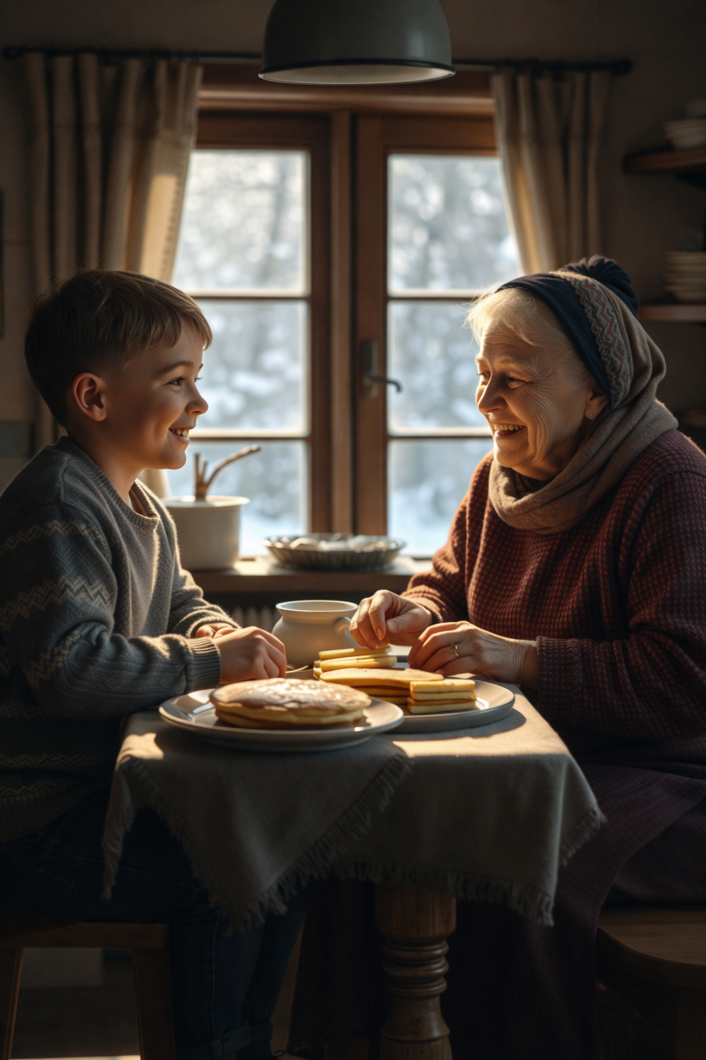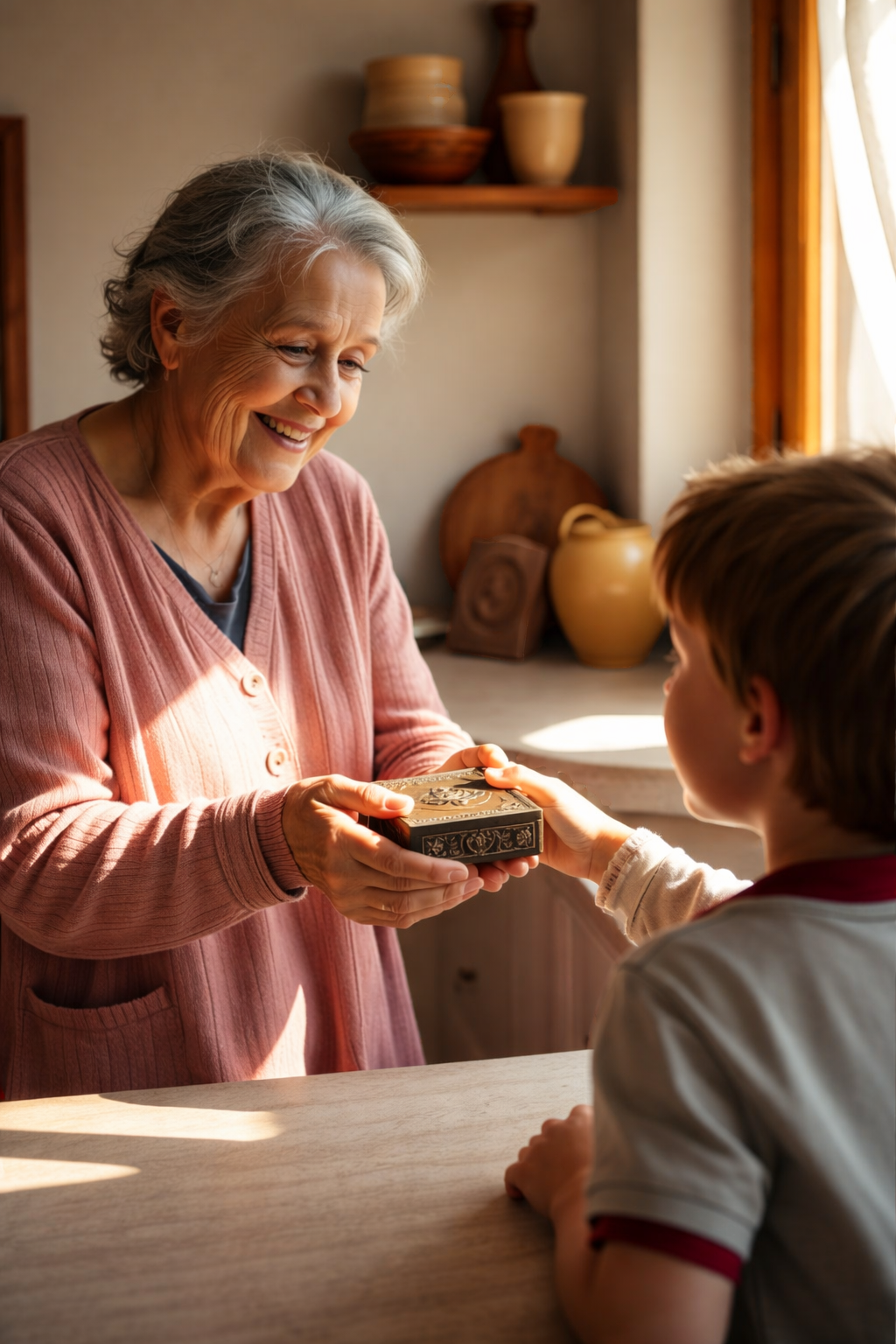 „Köszönöm, kedvesem. Te jó kisfiú vagy” – suttogta. Ezek a szavak a levegőben lógtak, mint az első esőcseppek a vihar előtt. Vanya már indulni készült, amikor a nagymama gyengéden megfogta a kezét. Nem erősen, de elég ahhoz, hogy érthető legyen: ez fontos.