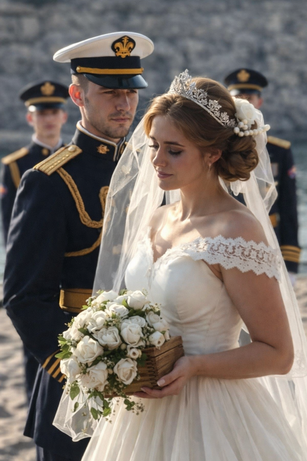 Minden jelenlévő elnémult, amikor a vendégek között megjelent tizenkét magas férfi, ünnepi katonai egyenruhában, a haditengerészet jelvényével. Lépéseik szinkronban voltak, járásuk határozott, tekintetük ünnepélyes. Lassan közeledtek, tökéletes sorban, magukra vonva minden tekintetet.