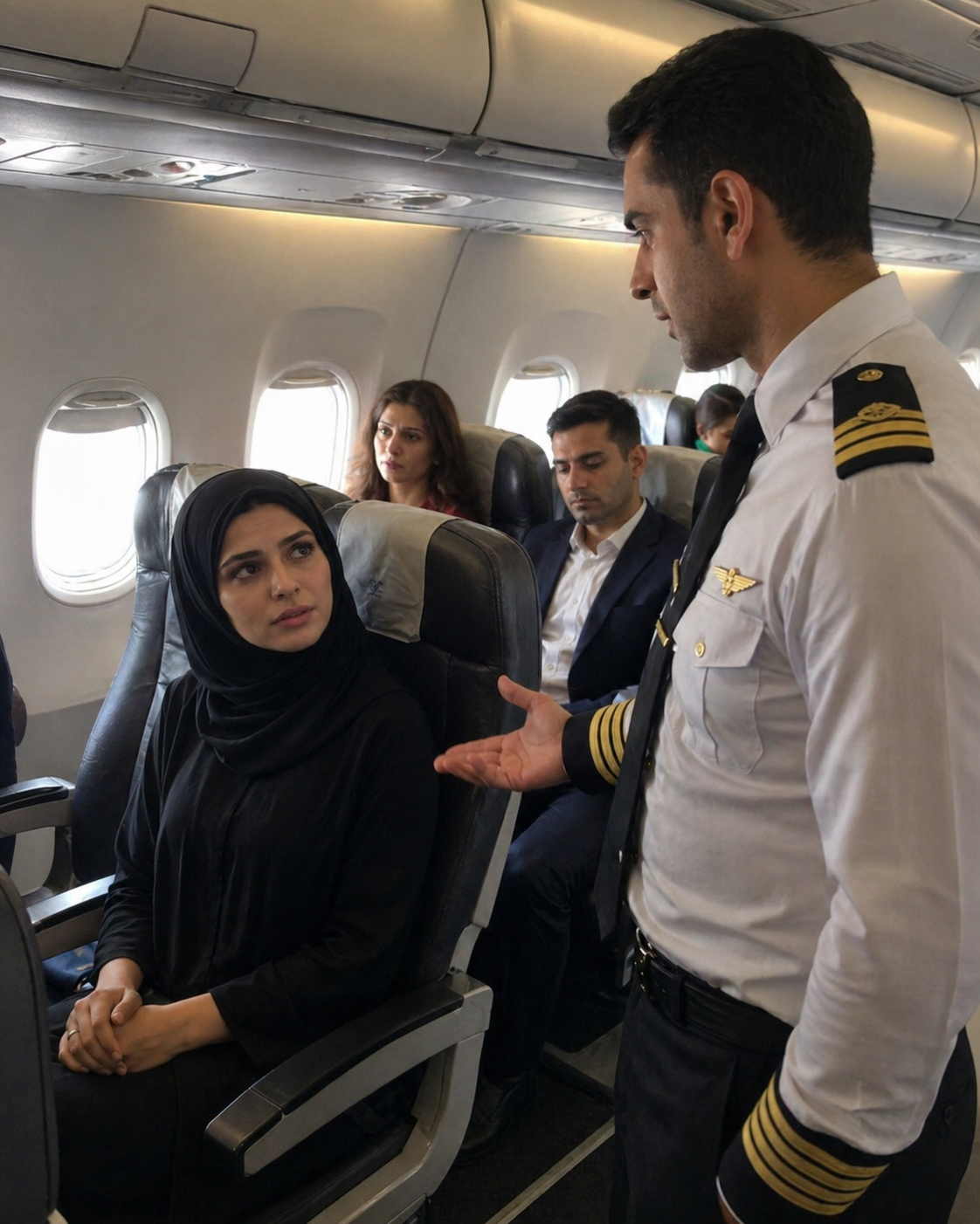 Fölötte Alejandro Martínez állt — magas, egyenes tartású férfi, kifogástalan egyenruhában. A hajában megjelenő ősz szálakat ugyanazzal a méltósággal viselte, mint mások a kitüntetéseiket. Harminc év a levegőben megtanította, hogy azonnal felismerje az embereket: a testtartásukból, a szüneteikből, abból, hogyan fordítják el a tekintetüket egy kínos pillanatban. Ez a nő azonban nem nézett félre. Szeme — szürkészöld, mint a Vizcayai-öböl háborgó vize — egyenes és nyugodt volt. Sem kihívás, sem félelem nem tükröződött benne. Nem volt benne az a megfelelni vágyó alázat, amit túl gyakran látott az utasoknál. Csak csend. Mély, súlyos csend, mint egy régi hajó gyomra, ahol olyan dolgokat őriznek, amelyekről nem beszélnek hangosan.