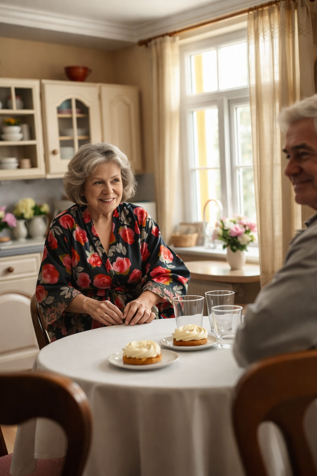 Na, a miénk megint elment?! Antonina Petrovna a konyhában sürög-forog, és elrendezi a vajkrémmel díszített krémes süteményeket. Teát iszunk, vagy megkóstoljuk a likőrömet?